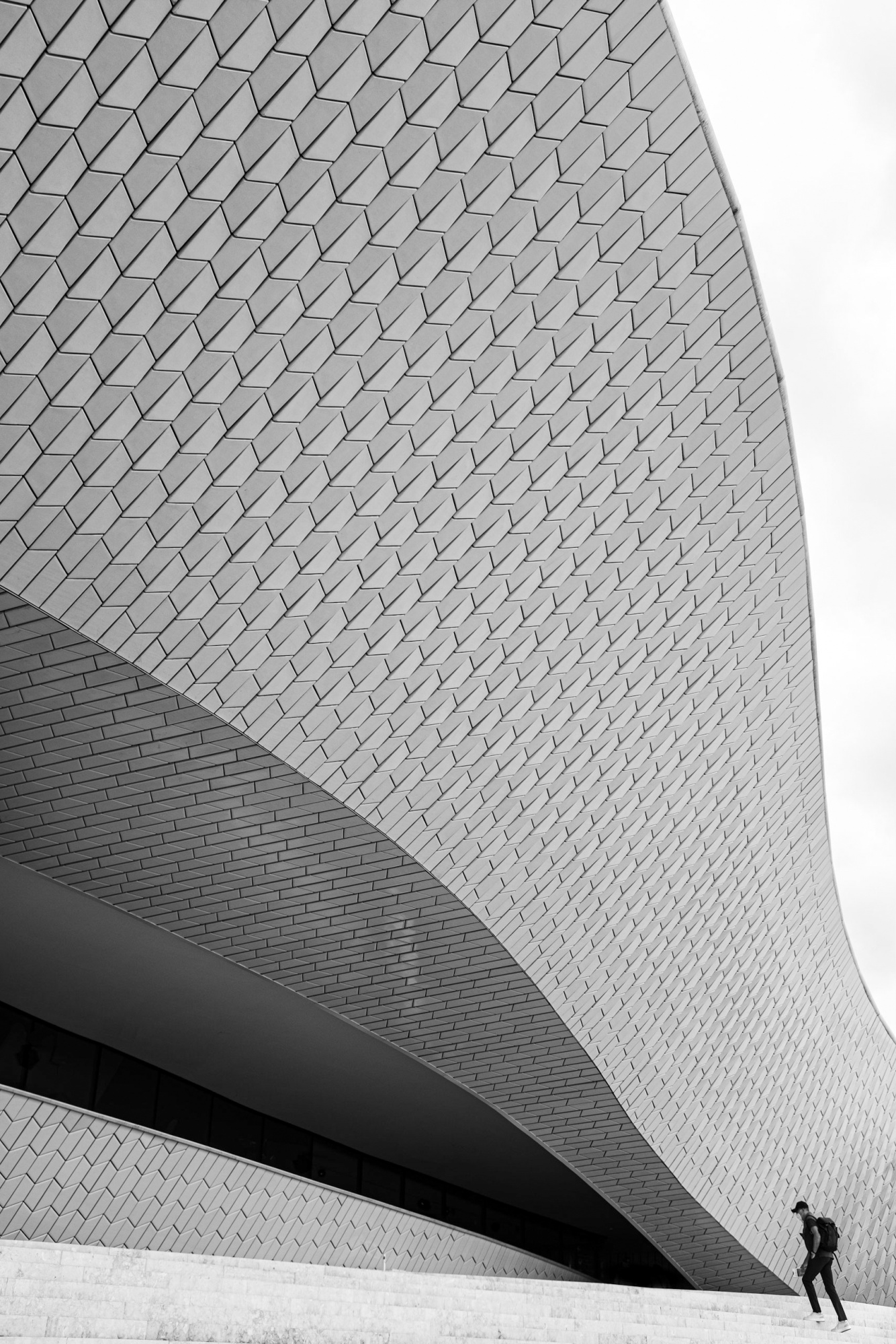 When in the right place, you can also observe and make the focal point of your photograph, not a particular element but the relation between the different elements in the frame. The photograph below was taken from a high point of view inside the Depot Boijmans Van Beuningen in Rotterdam.