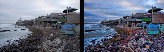 to enhance the colors of the rock and sea.