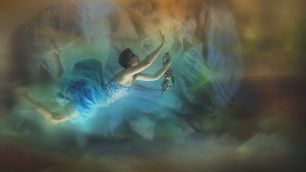 During underwater photography there is no way to verbally communicate with the model due to the location. So before starting the post processing, the photographer will have to go through all the shots. Each shot has its own character and mood due to different poses and mimic. From this the photographer gets an idea about the post processing. It is just like preparing what a painter would like to paint. Therefore the result would be the photographer’s imagination of the model’s feeling. I would start with raw setting and ensure texture is clarified so it will not fade away during blending. I use a lot of blending especially to get certain natural colours. I prefer to take a shot of a colour which I want to blend into my photo to create the exact colour that I like.