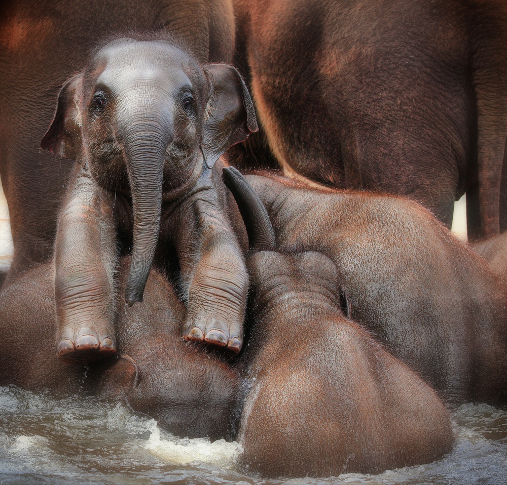 Elephants are some of the most intelligent, social and empathic animals around. They commonly show grief, humour, compassion, cooperation, self-awareness, tool-use, playfulness and excellent learning abilities.