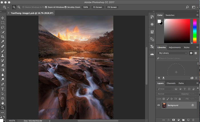 1. Open your psd or psb or tif image file in Photoshop, which should be unsharpened, and all layers have already been merged.