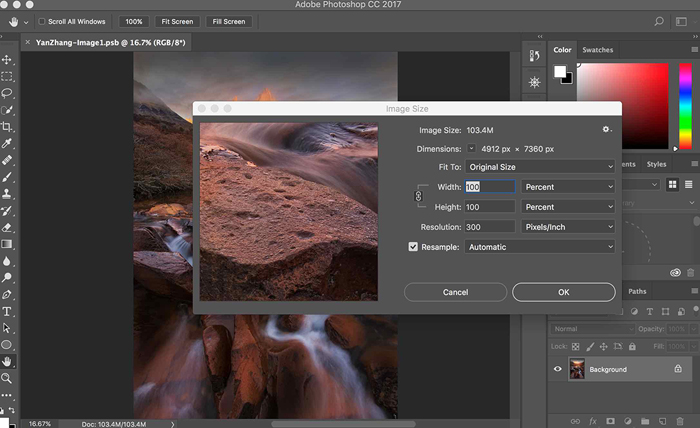 Here is a simple process of enlarging a digital image file to a proper dimension fitting to the required print size.