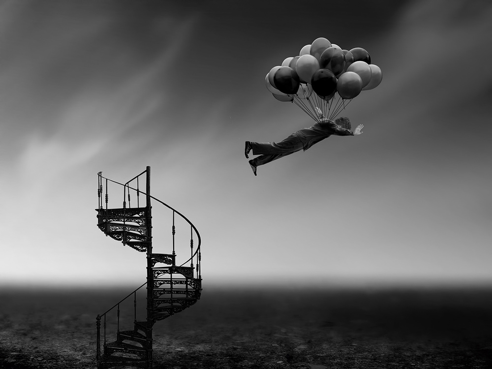 One can look at stairs and at escalators as the subject matter by itself or include this element as a part of the story in a street photograph or as an element in a conceptual composite image, one can give it more presence or less presence, put it more visible or less visible and so on.
