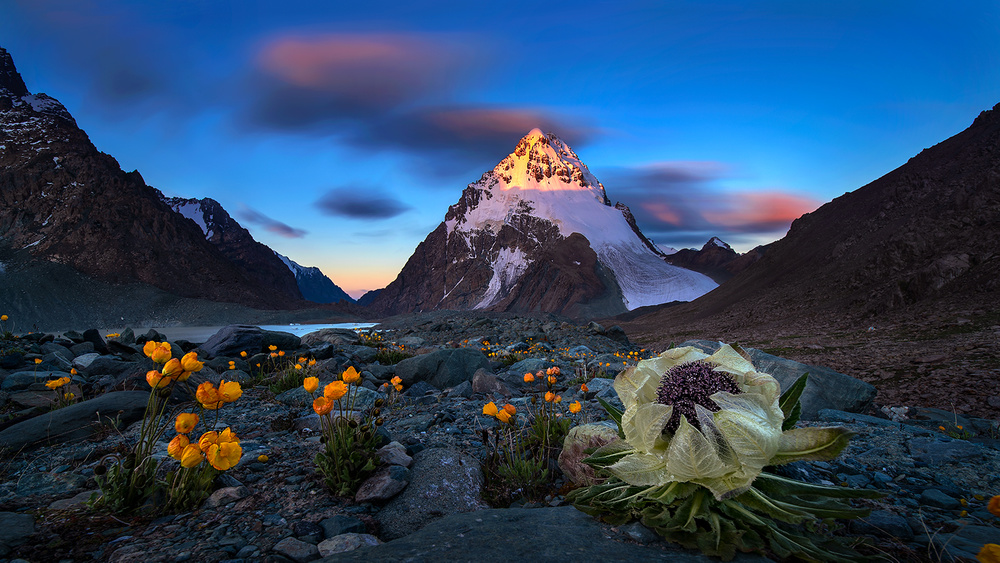 “Bogda and Snow Lotus” - Dangerous and precious Tianshan snow lotus living in the rocks around snow line