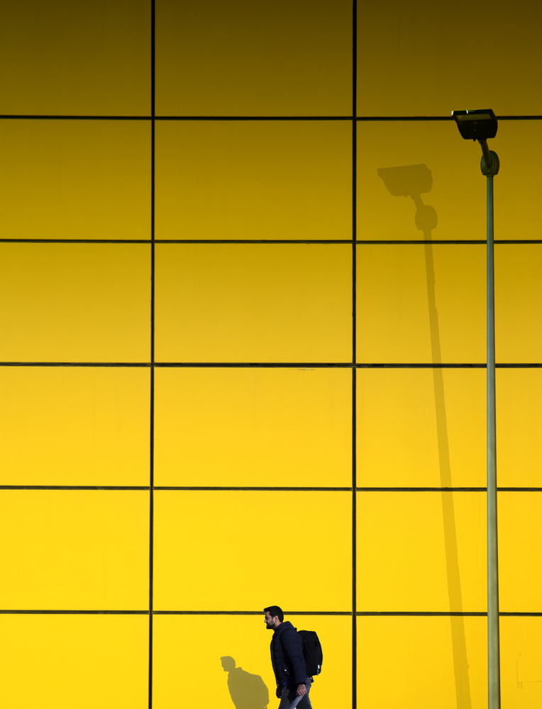 You made an outstanding simple, elegant photograph. The Yellow and black are giving a strong clean contrast. The grey light pole adds a third element of colour which support the modern presentation. It is most appealing!