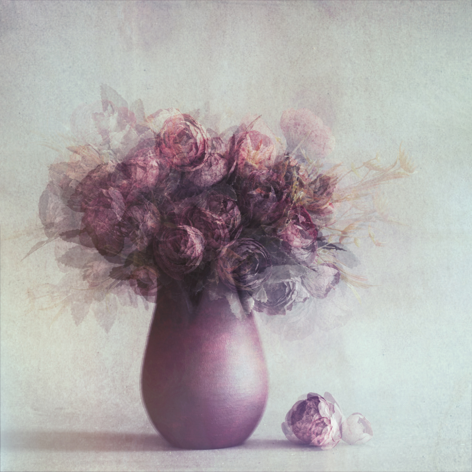 When I take still life images, I prepare my background first. Then I choose the vase and the flowers or other props. The next step is to set up the composition. When all this is set, I start shooting in manual mode. I prefer to use natural light, so most of my images are long exposures. I usually take multiple images. The final step is putting these images on my computer and choose the one or more that I want to edit. While I am adjusting the main aspects like contrast and light I decide on the mood of the image. Then the creative part starts. I use Photoshop and my plug-ins to shape the image as I wish.