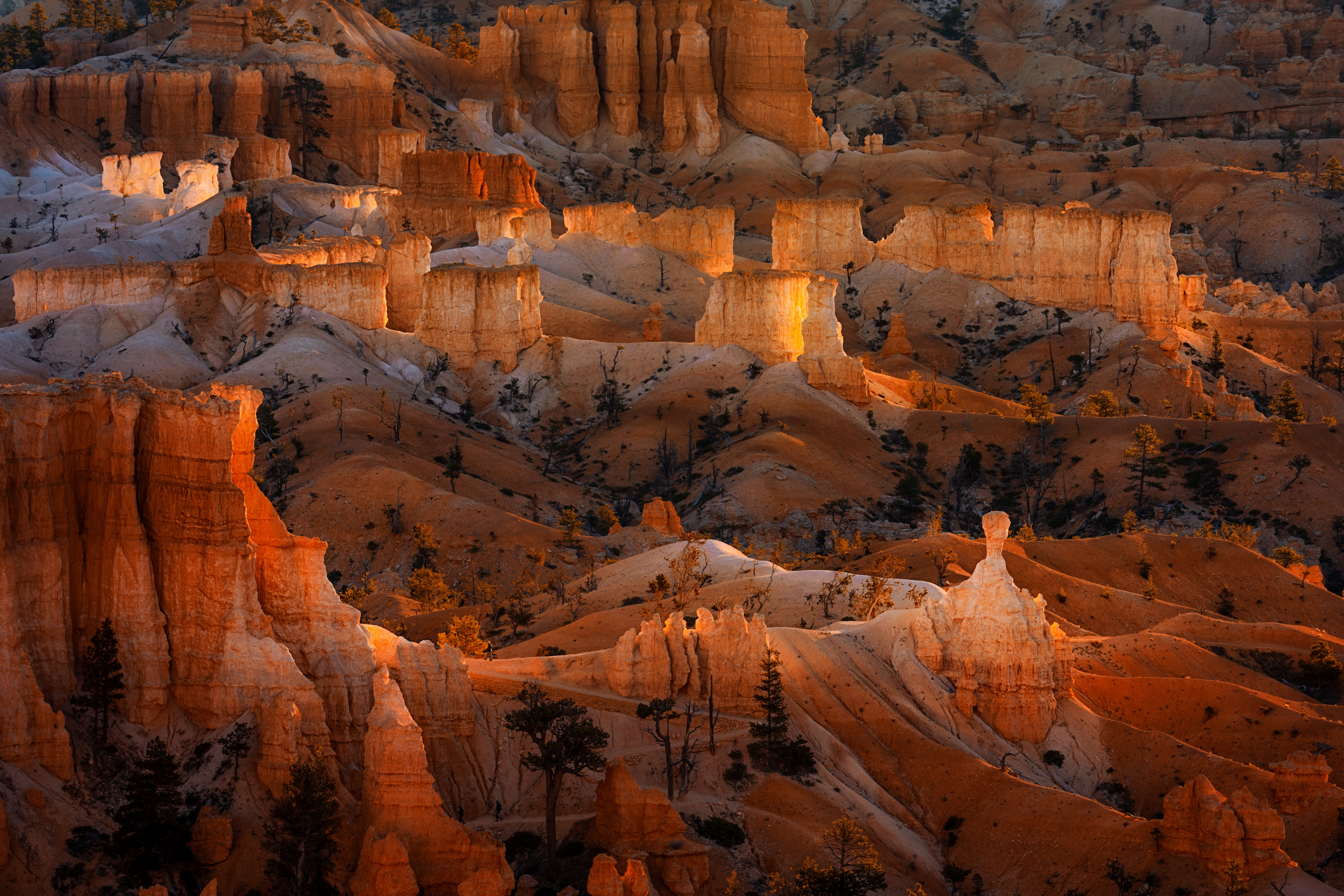 The rock formations nicknamed "Hoodoos" in Bryce Canyon National Park are unique. Bryce Canyon was recognized as a national park in 1928 and is located in south-western Utah, about 400 miles from the famous Las Vegas. The fact that it has “Canyon” in the name is a bit misleading, because the main attraction is not the gorge, but the huge rock formations that literally form amphitheatres.
