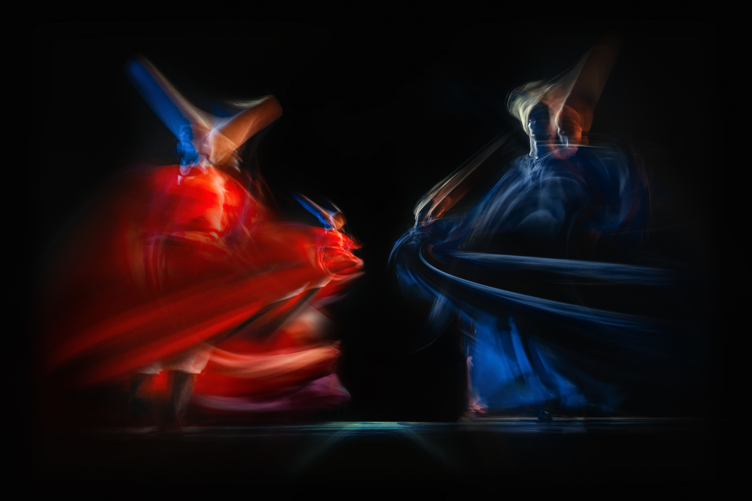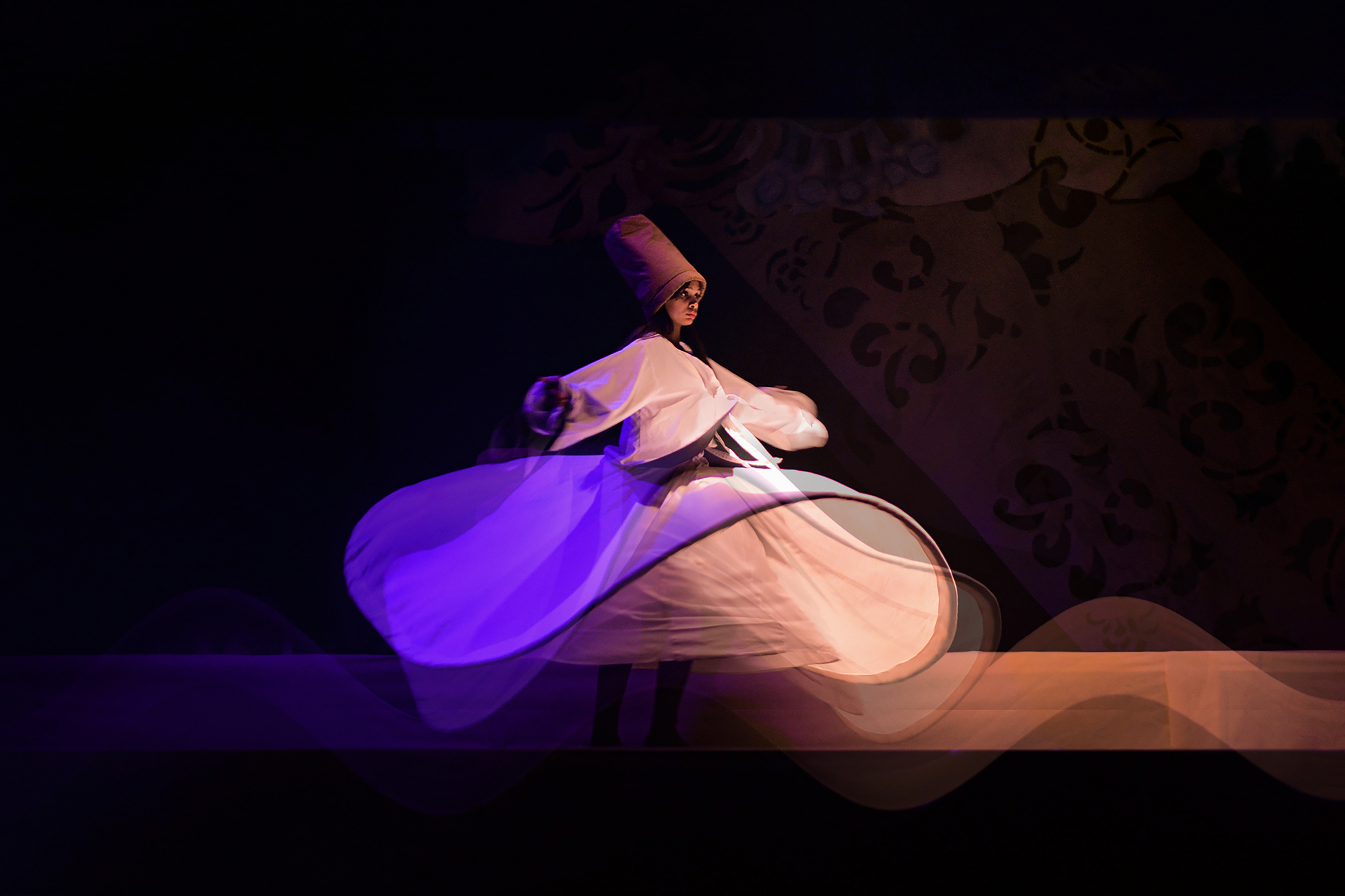 'Sins' is a single image taken with long exposure techniques. I photographed it at the Bibliotheca of the Alexandrina theater in Egypt on the occasion of the performance of the most famous Sufi band 'El Molawya'.