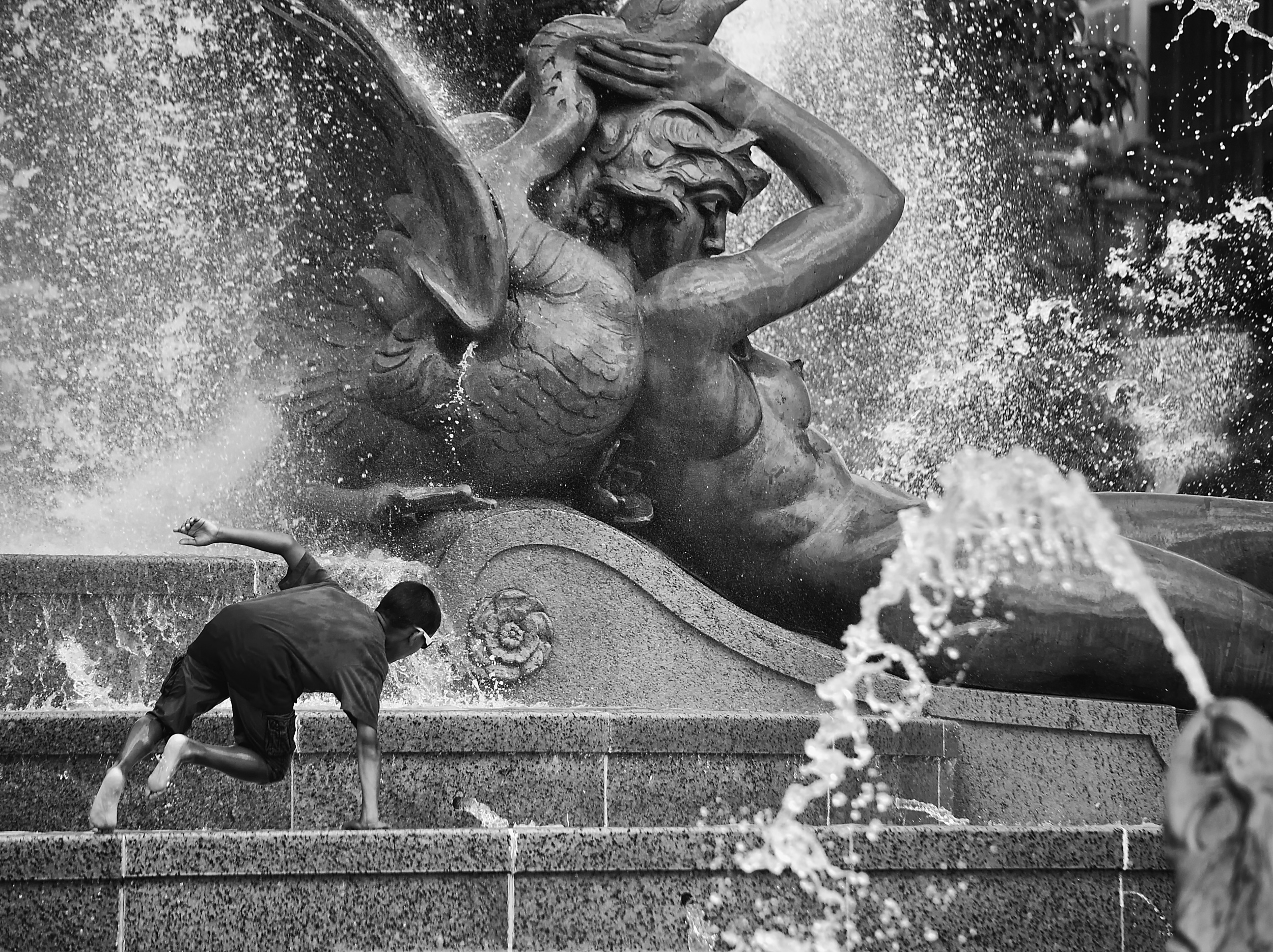 I am attracted to irony, whimsy, contrast and juxtaposition. That’s what I try to capture in my photography. I have always been extremely visual; that’s how I relate to the world. I like to photograph what charms me, to freeze that moment in time and to share it. Black clad fundamentalists in pastel landscapes, my gifted cat who watches cat videos all day, the window washer, Swann Memorial Fountain; just about anything that is visually appealing to me. I have developed a calculated eye which helps me see possibilities. I am always hoping for that split second when creatively, lightning strikes.