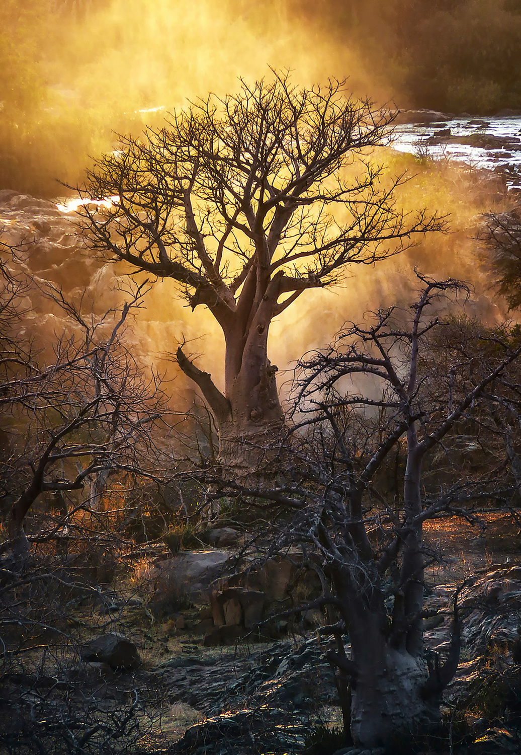 Every story has a starting point and this came to light when the jungle elf appeared. Her tiny, graceful figure was perceived as a slight accent of colour in the magical setting of a fading world. I needed to tell a story of resilience and fragility and that Baka girl seemed like a little elf who was claiming her right to grow up in her natural habitat and in her ancestral culture. Her tiny body caressed the majesty of one of her coveted trees, invoking Edjengui, the protective spirit of the jungle. They tell you, but you can't quite imagine the magnitude of the catastrophe until you come across countless trailers loaded with gigantic moabi trunks. A green haemorrhage runs through the land of the Baka pygmies in the jungles of Cameroon. A dying planet that is determined to bleed to death, while a handful of international corporations and corrupt powers enrich themselves.