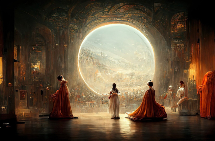 ”Theatre D'opera Spatial”. Generated on Midjourney, by Jason M. Allen.