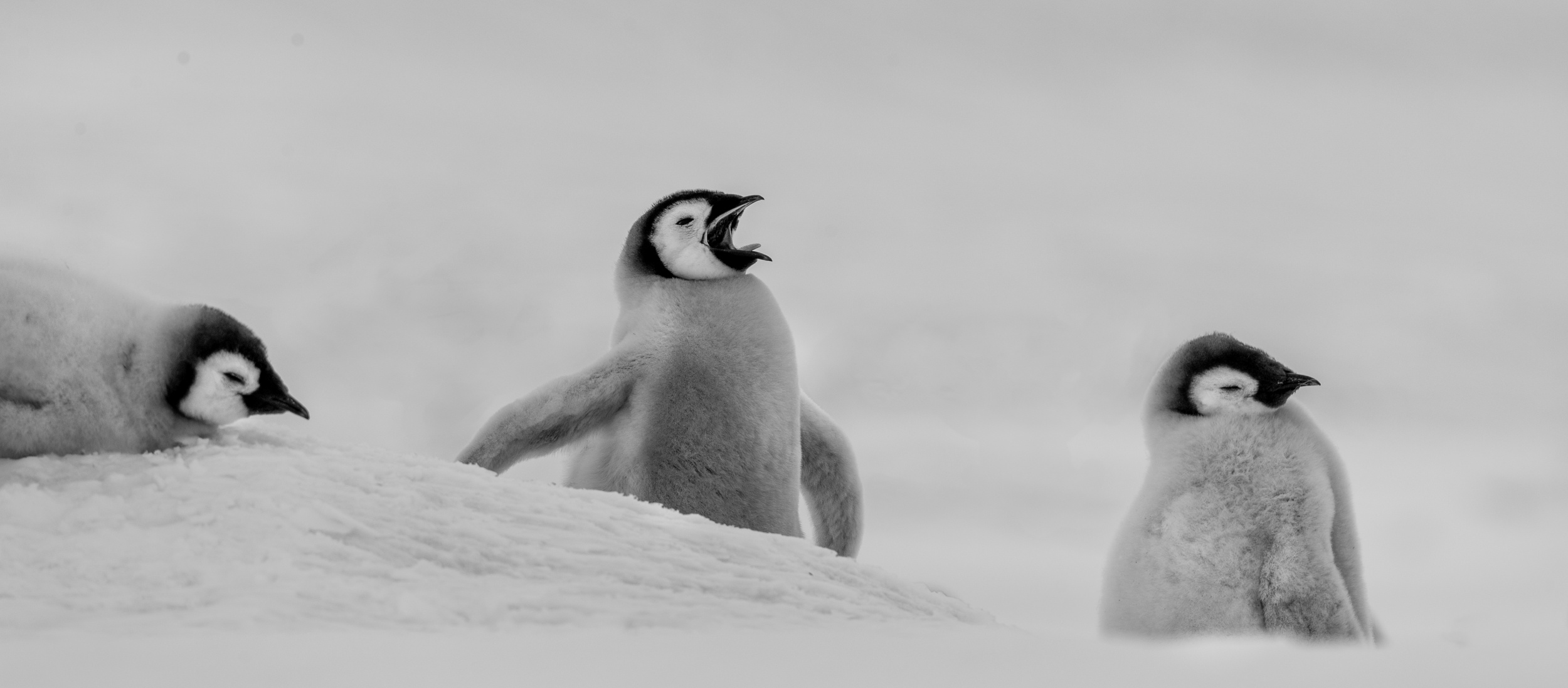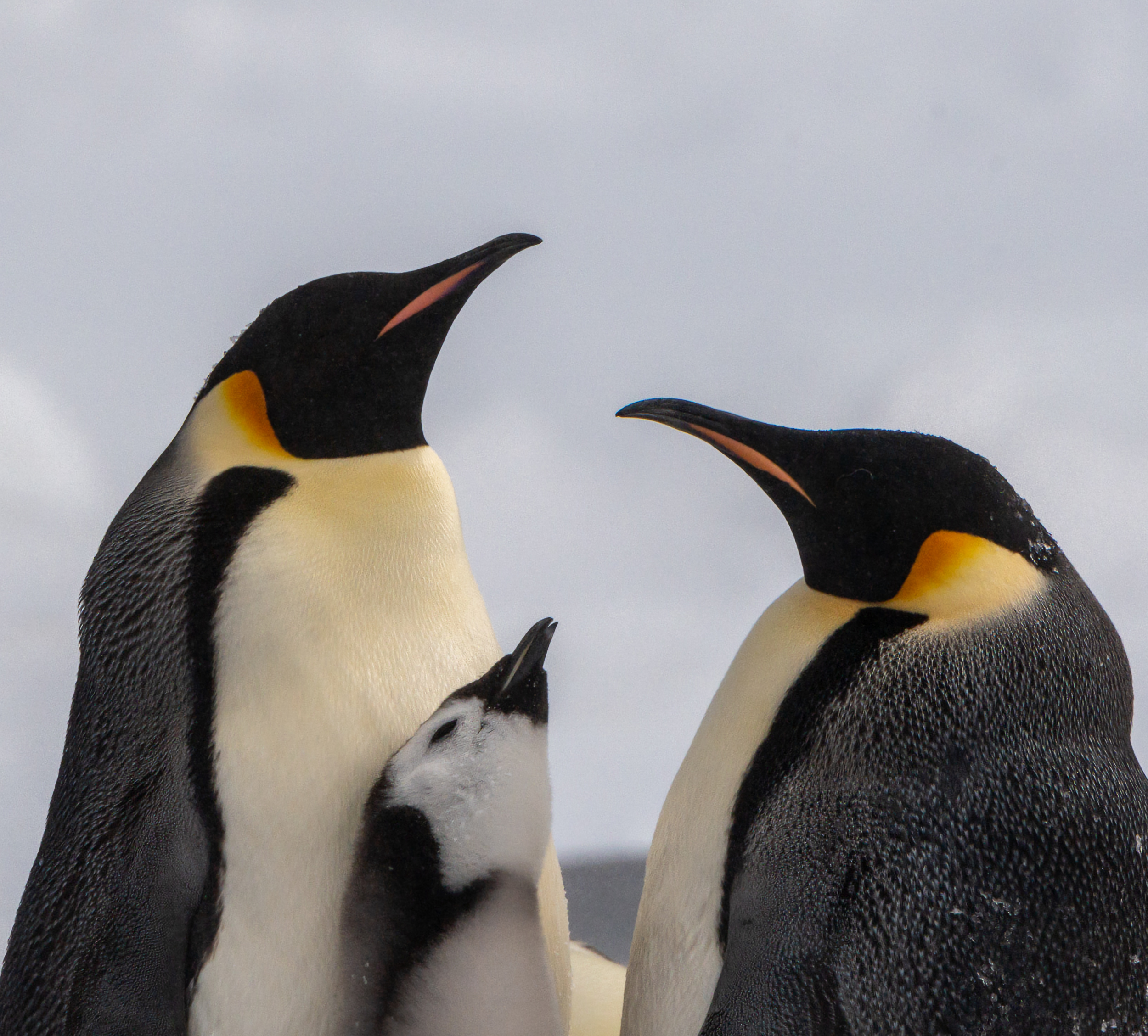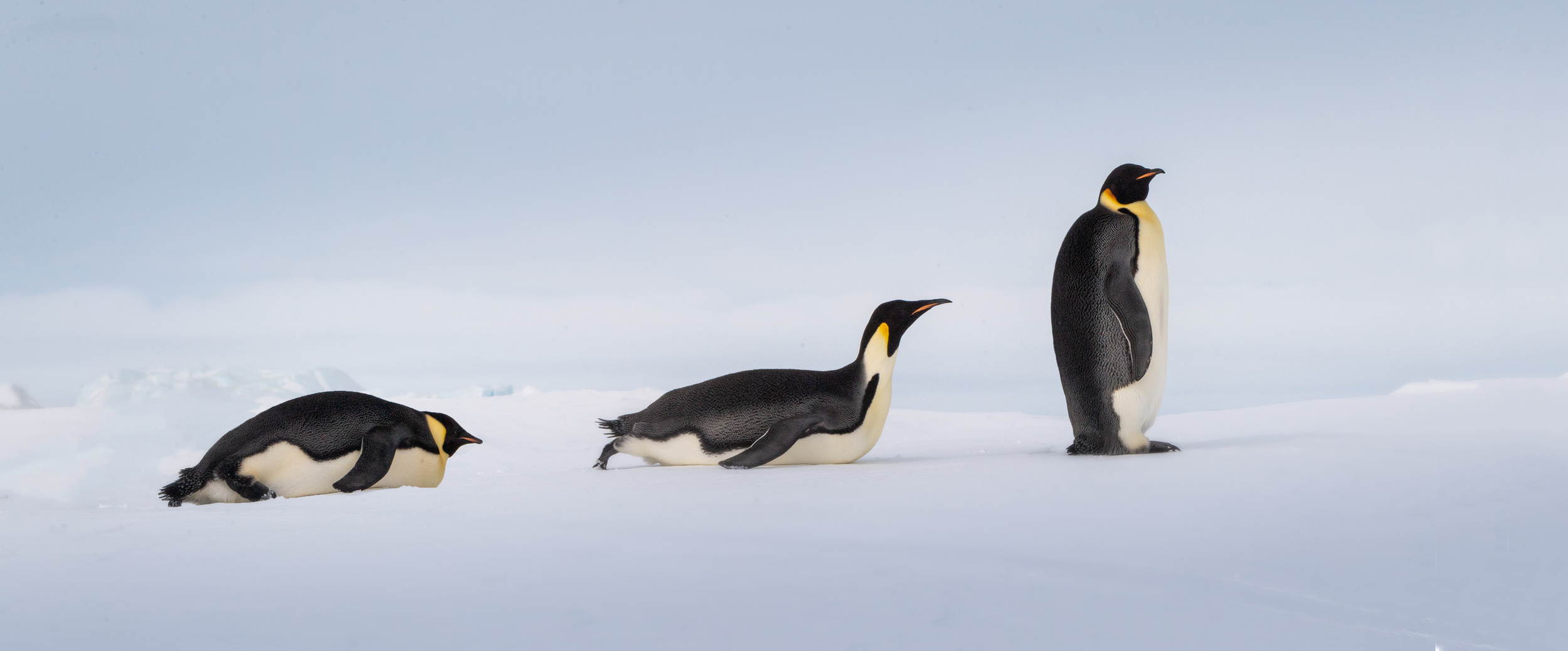 Snow Hill Island is home to up to 10,000 Emperor Penguins, making it the northernmost location on the continent where these penguins can be found. Wild Emperor penguins are only found in Antarctica. They breed and raise their young mostly on ‘fast ice’, a floating platform of frozen ocean which is connected to the land or to ice shelves. From birth, they spend their entire lives in and around the Antarctic ice, although very rarely vagrants have turned up off the coast of New Zealand. Emperors are the biggest of the 18 species of penguin found today, and one of the largest of all birds. They are approximately 120cm tall (about the height of a six year old child) and weigh in at around 40 kg, though their weight does fluctuate dramatically throughout the year. Emperors are the least common Antarctic penguin, with global population estimates of 265,500–278,500 breeding pairs. Emperor penguin colonies have been discovered and counted from space. For the last 15 years, British Antarctic Survey (BAS) scientists have been looking for new colonies by searching satellite imagery for their guano stains on the ice. There are now 66 known emperor penguin colonies around the coastline of Antarctica. Emperors incubate their eggs during the long dark southern winter months. Courtship displays are intricate but copulation is quick and the female lays a single egg in May or June. She then passes it over to her mate to incubate - and she’s off. She spends the next nine weeks at sea, feeding. The male carefully balances the egg on his feet for between 65 – 75 days to keep it warm in a specially adapted brood pouch, and off the snow surface, before it hatches. Emperors are uniquely adapted to survive these harsh conditions when temperatures can drop down to a bone chilling -50°C and with winds of up to 200km/hr. They have two layers of feathers, a good reserve of fat and proportionally smaller beaks and flippers than other penguins to prevent heat loss. Emperors also have feathers on their legs, so their ankles don’t get too chilly. Even their feet are adapted to the icy conditions, containing special fats that prevent them from freezing and strong claws for gripping the ice. But most remarkably, colonies of adults and chicks work together to huddle for warmth. 5,000 or more tightly packed adults and chicks shuffle around, so each takes a turn - but not too long - on the outside of the huddle where it’s cold. This is in complete contrast to their quarrelsome and territorial neighbours, the Adélie penguins. Their strong sense of community literally keeps them alive. Their impressive size and colour makes them extremely popular and a favourite subject for wildlife photography.
