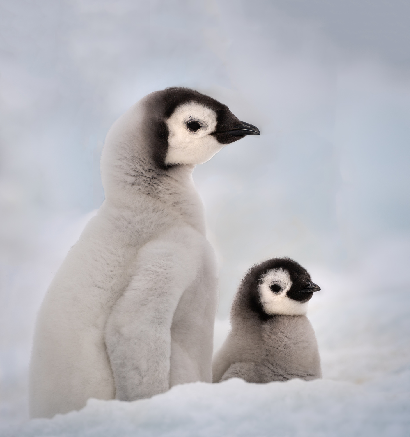 'Little brother-Old emperor chick with a little one'