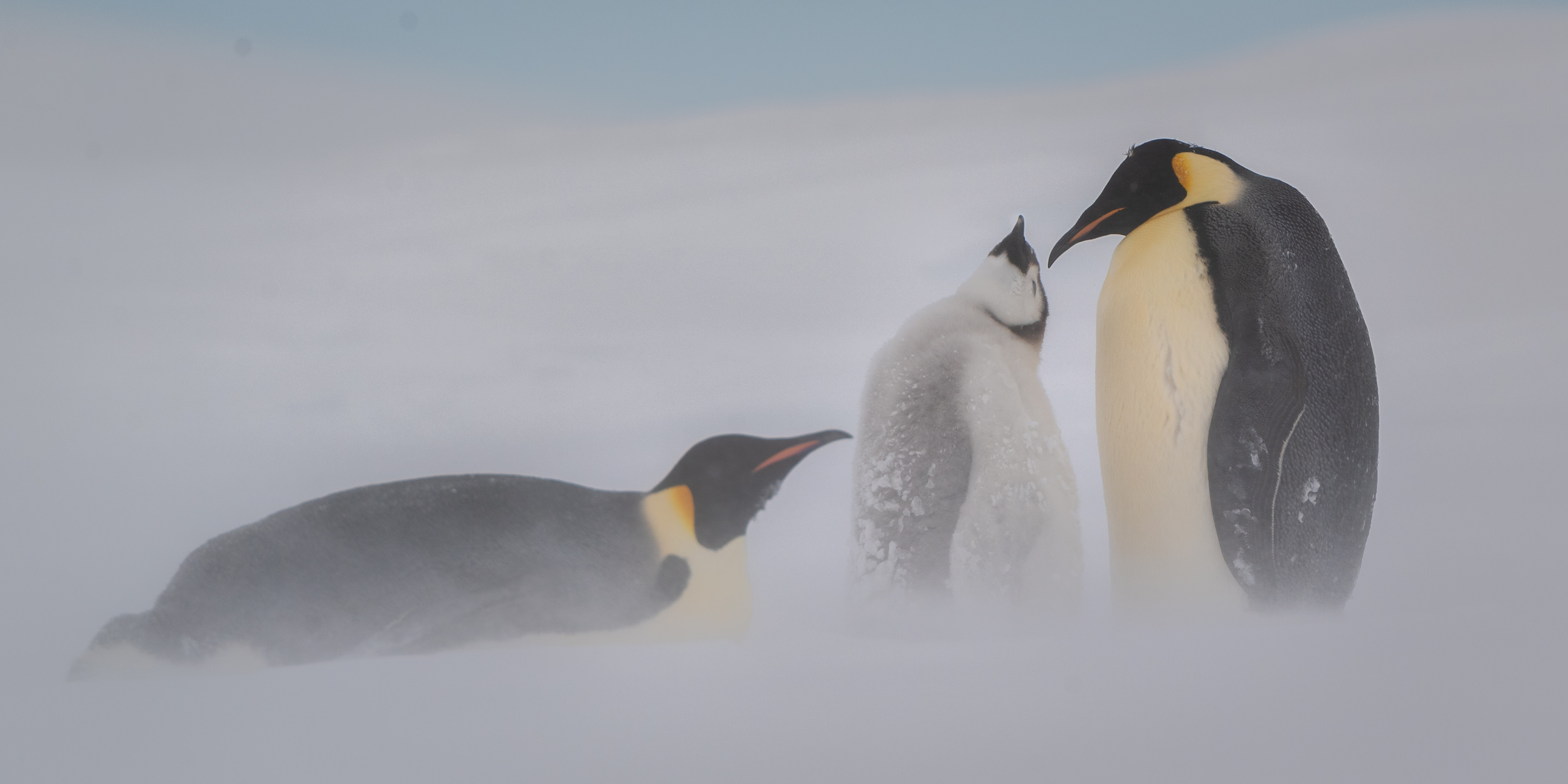'Strong family-A family of emperor penguins against windy snowing'