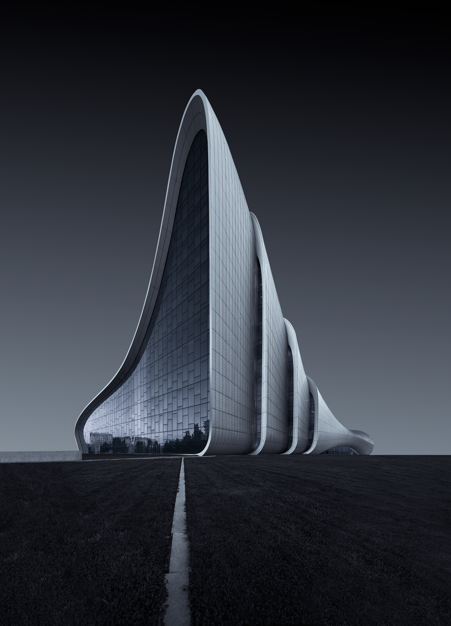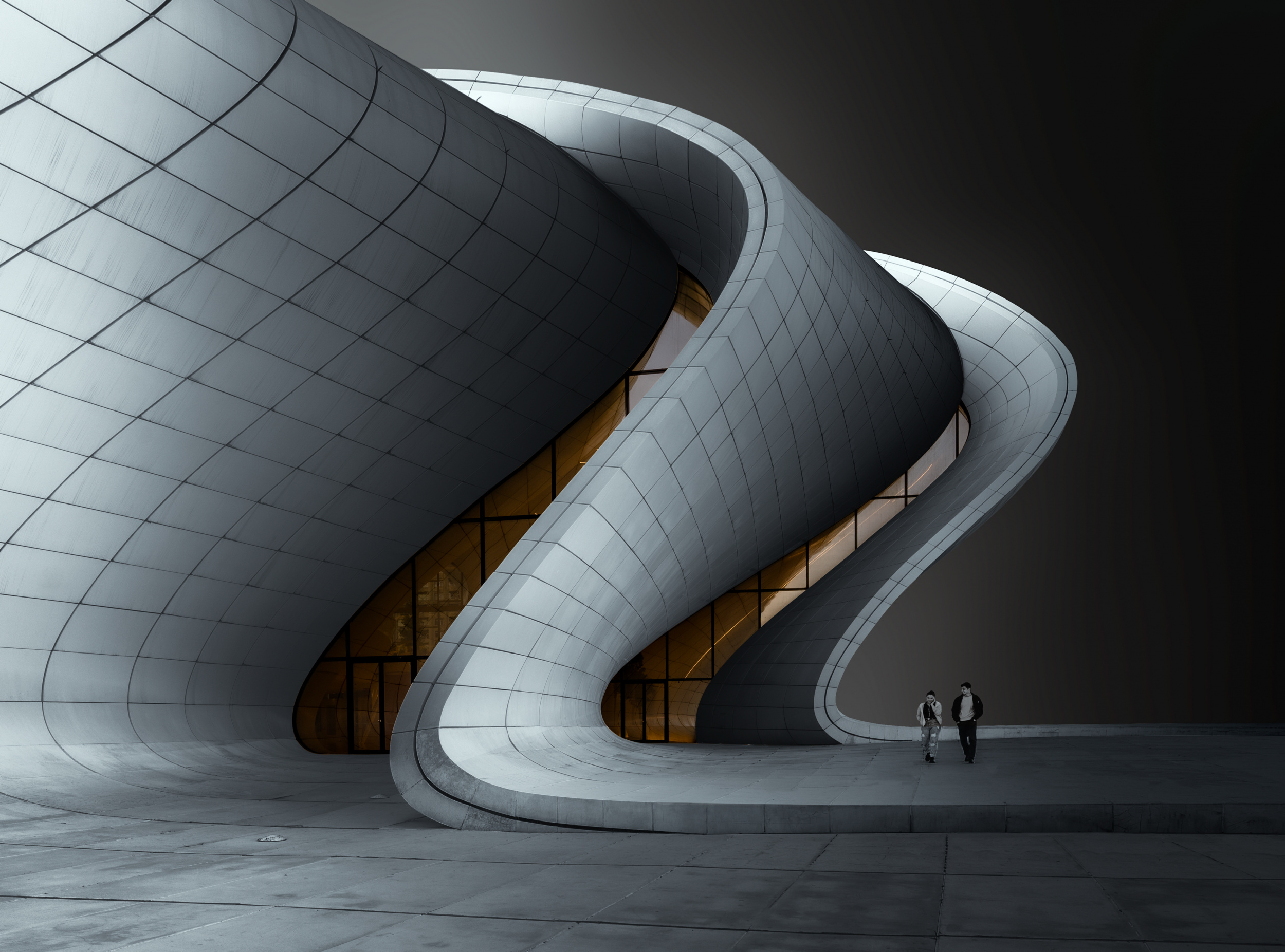 The first one is (Zaha Art) which I took for Heydar Aliyev Centre in Baku, Azerbaijan, designed by the great architect Zaha Hadid and known for its distinctive architecture, so I took all the perspectives I liked, then I decided to go to the back elevation which is not familiar to many photographers, then I worked hard on editing and perfecting it until I got paid by winning many international awards in USA, Italy and United Arab Emirates.