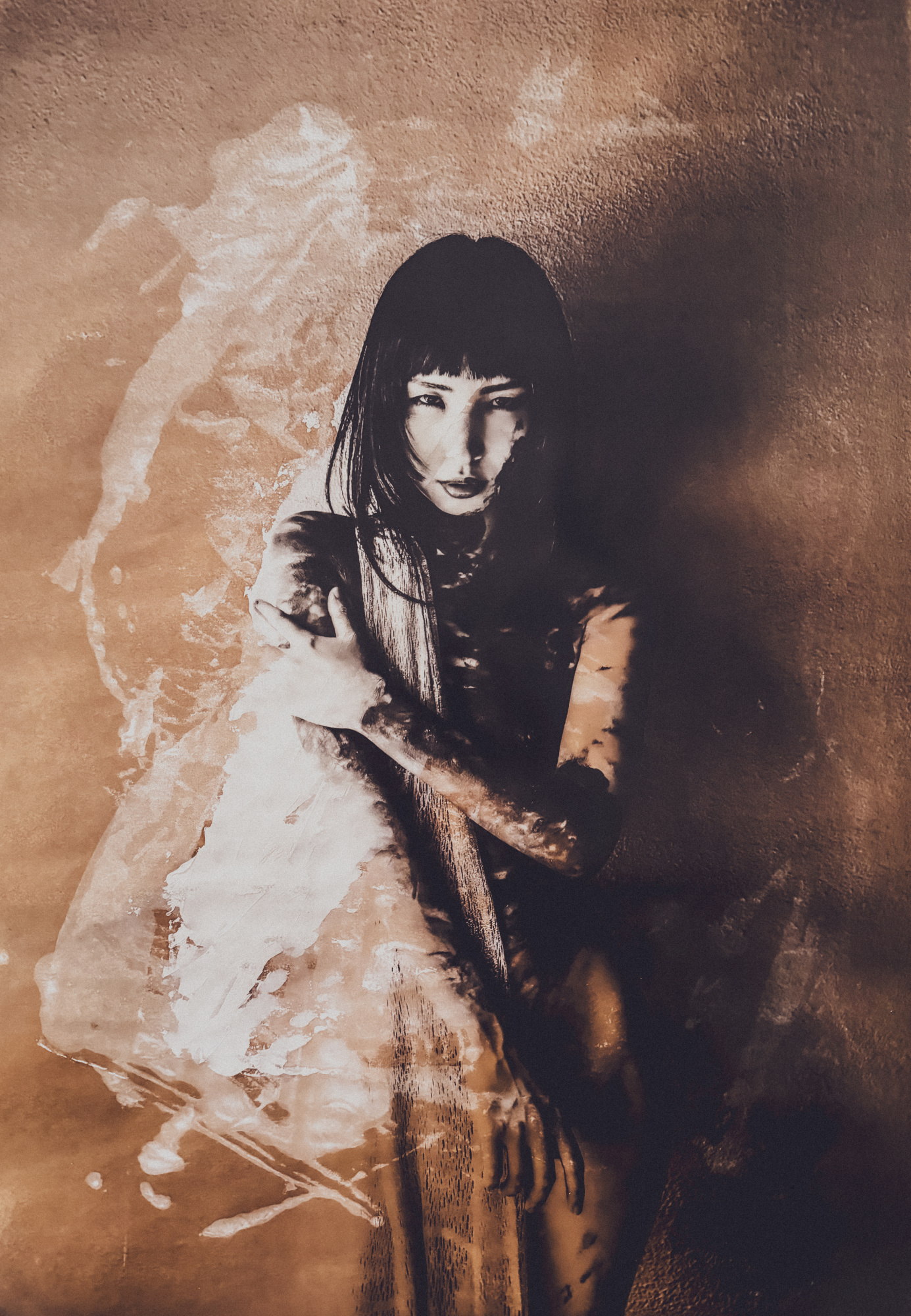 For Kurosaki Sangan, photography is both a hobby and a means of enriching his life. He wants to create unique photographic works and share them with those who appreciate them. Rather than digital compositions, he creates analogue works by overlaying photographs on craft paper that has been painted with white oil paint. He creates his portraits with the intention of capturing the emotions of his subjects. Last but not least, he believes that compatibility with the model in terms of personality and aesthetic sensibility is more important than beauty.